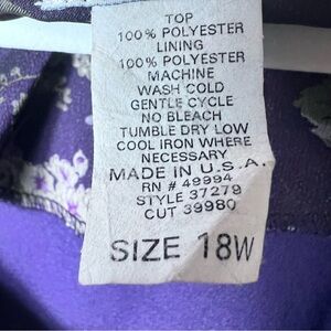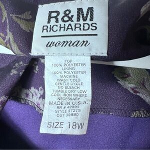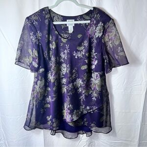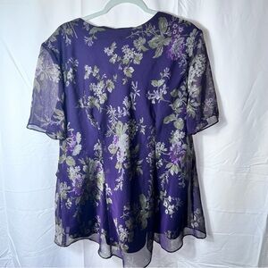 R&M Richards Woman Purple Floral Chiffon Asymmetrical Blouse Top Plus Size 18w