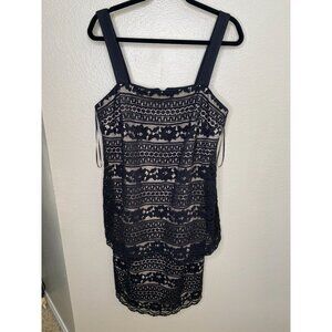 R&M Richards Womans Black Lace Overlay Dress Plus Size 14W Sleeveless polyester