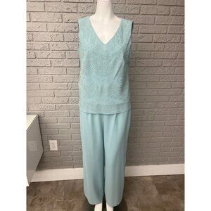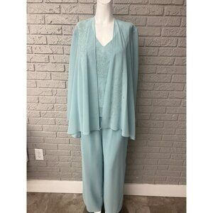 R&M Richards Women Blue Beaded 3 Piece Mother Of The Bride Formal Pant Set Size