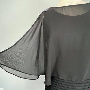 R&M Richards Womens Black Chiffon Capelet Sheath Cocktail Dress size 12