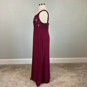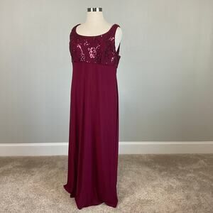 R&M Richards Women's Formal Dress Size 18W Red Sequined Sleeveless Long Gown
