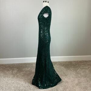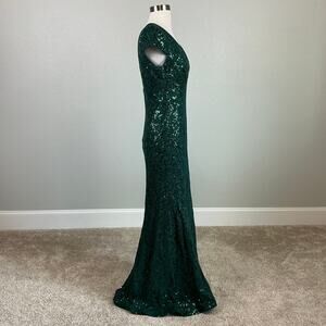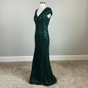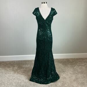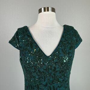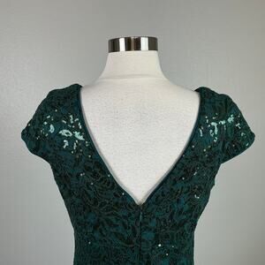 R&M Richards Women's Formal Dress Size 6 Green Sequined Lace Short Sleeve Gown