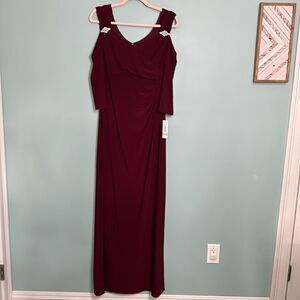 R&M Richards Women's Gathered Off The Shoulder V-Neck Gown NWT