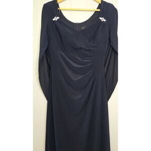 R&M Richards Womens Long Cocktail MOB Dress Cruise Navy Formal Rhinestone Sz 6