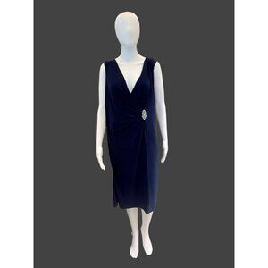 R&M Richards Womens Navy Blue Dress With Rhinestone Detail & Sheer Sleeves Style