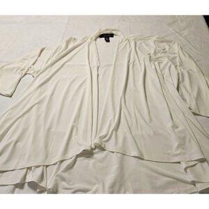 R&M Richards Women's Open Front White Cardigan 3/4 Sleeves Ltweight SZ L Career