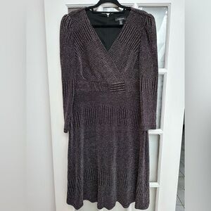 R&M Richards Women’s Plus Long Sleeve Metallic Shimmer Midi Dress Size 16W