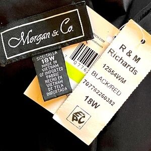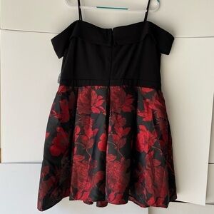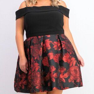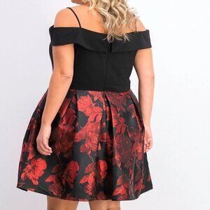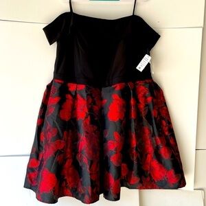 NWT (MSRP $89) Morgan & Co. R&M Richards Women Plus Size Trendy Off Shoulder Floral Metallic Black Red Dress Cocktail Party Formal Evening Prom Dress, Sz 18W