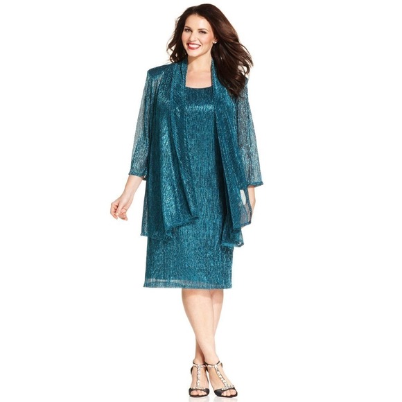 R&M Richards Women's Plus Size Sleeveless Metallic Dress and Jacket Sz18