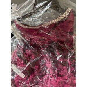 This stunning R&M Richards cocktail dress is the perfect addition to any party wardrobe. The rich burgundy velvet fabric drapes beautifully, creating a sophisticated and timeless look. The shift style and plus size fit make it a comfortable and flattering option for any occasion. Crafted with attention to detail, this dress is the epitome of luxury. The red color is bold and eye-catching, while the velvet fabric adds a touch of elegance. Whether you're attending a formal event or just want to feel glamorous, this dress is sure to turn heads.