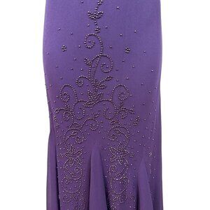 This women's purple chiffon formal dress features a sleeveless design with a flattering silhouette. Paired with a matching long-sleeve jacket, it showcases elegant bead detailing throughout for a touch of sophistication. Perfect for evening or special occasions. No flaws or defects detected.