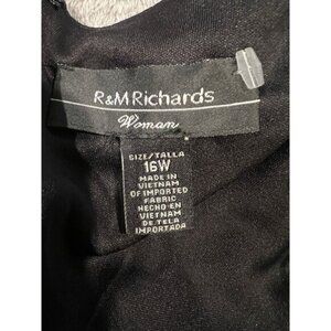 R&M Richards Womens Rhinestone Black Ruched Evening Dress Plus Size 16W