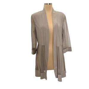 R&M Richards Womens Sheer Tunic Top Jacket Size 14 Open Front Tan
