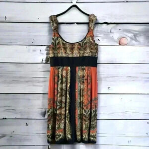 R&M Richards Women’s Sleeveless Dress Size 8 – Orange, Black & Brown – Perfect for Spring & Summer