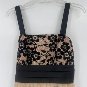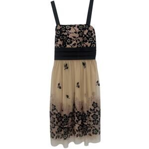 Tan R&M Richards Black Velvet Glitter Mesh Y2K Fit and Flare Sleeveless Dress