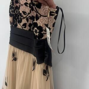 R&M Richards, new with tags, glitter dress, floral flocked velvet, tulle mesh, party dress, formal dress, prom, fit and flare, black and pink, special occasion, wedding guestY2K, glam, coquette, romantic, formal, fairycore, whimsical, feminine, holiday party, wedding