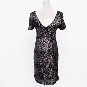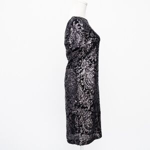 R&M Richards embroidered sequin dress, a knee‑length stunner tailored for mothers of the bride—or anyone who needs a polished special‑occasion look. Delicate embroidery overlays shimmering sequins for subtle dimension, while the short sleeves and modest scoop neckline keep the silhouette timeless. Crafted from a comfortable polyester‑spandex blend, the dress skims the body without clinging and falls to roughly 39 inches from shoulder to hem for flattering coverage.