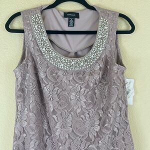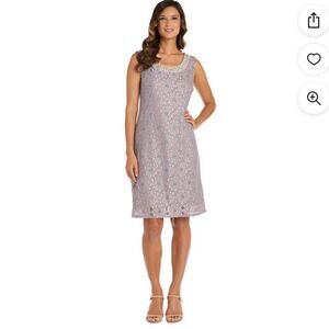 R&M Richards floral lace formal sheath mini dress with beaded neckline size 6