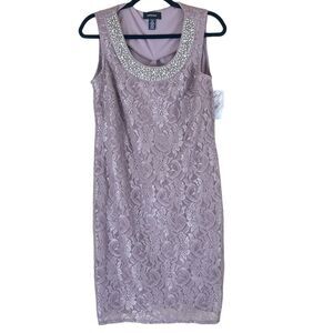 R&M Richards floral lace formal mini sheath dress with beaded neckline