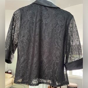 R&M Richards women’s size 12 black metallic lace/ satin detail evening jacket