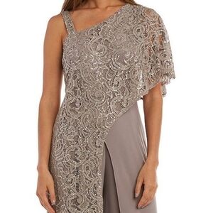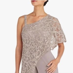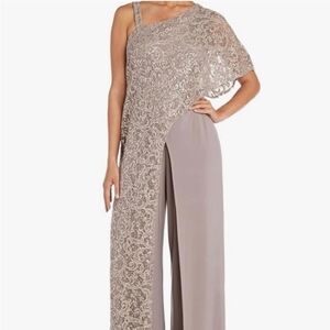 R&M mother of Bride one side cape jumpsuit tan beige sequins sz 8