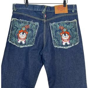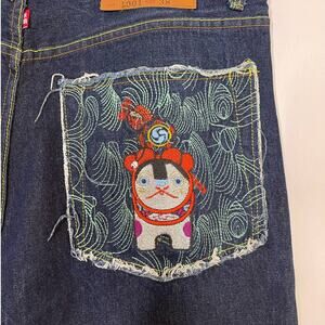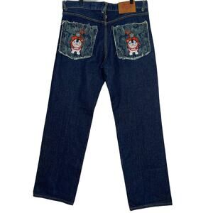 Red Monkey Company Mens Jeans with Embroidered Pockets. Unique Y2K design