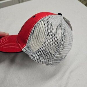 This RMEF Hunting trucker hat features a striking red front with white mesh back panels, providing excellent ventilation. Its adjustable snapback ensures a comfortable fit for various head sizes.