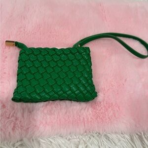 Woven Mini Coin Purse - Vegan leather in green Never been used in brand new condition . Tag has been detached .