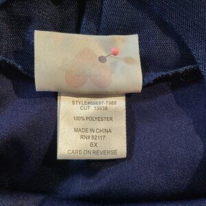 Make her next celebration sparkle with this RMLA girls’ party dress in size 6X. Featuring a sleeveless bodice with delicate beaded embellishments and a sheer chiffon overlay, this navy blue dress flows into a dramatic hi-low hemline for added elegance. Perfect for birthdays, weddings, or holiday events, it combines comfort with standout style.