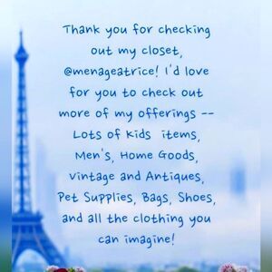 Do you know how to bundle? I offer 15% off every item if you buy two or more items from my closet! You also only need to pay shipping ONCE on a bundle -- up to 5 lbs per order. It’s a win-win! To bundle, tap on the shopping bag icon under each item you’d like. Posh will combine all those items into a single bundle, automatically deduct the 15% discount, and combine the shipping. If you put it in a bundle with other items, I'll give you an even better price!