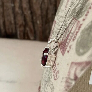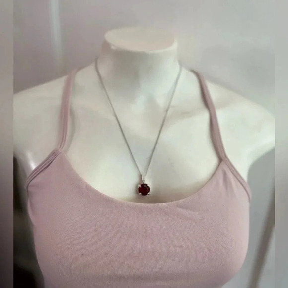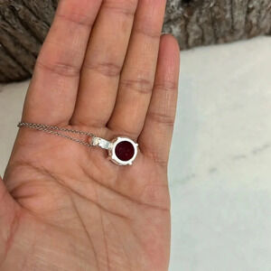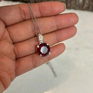 RMN Ruby Zirconia Pendant Necklace Silver Tone Chain Women’s Jewelry