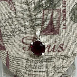 SEO Tags: ruby pendant necklace, zirconia jewelry, RMN Roman necklace, women’s fashion jewelry, red crystal necklace, silver tone pendant