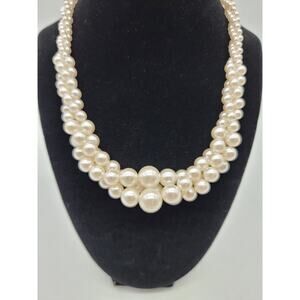 RMN Twisted Faux Pearl Necklace Gold Tone Lobster Closure Elegant Formal