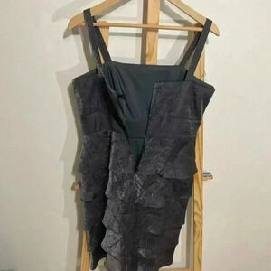 R&M Richards Tiered Embellished Dress Dark Gray Metallic Tank Dress back zip and