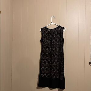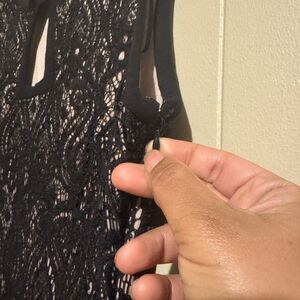 R&M Richards Women Size 14 Black and Nude Halter Sheath Mini Dress Keyhole , lined