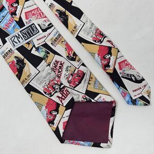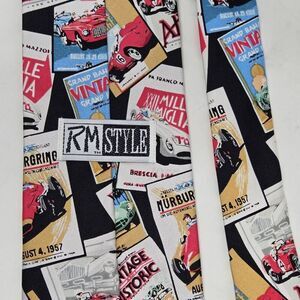 RM STYLE SILK TIE MONACO INDY RACING CARS POSTERS BLACK 3.75" X 57" VINTAGE