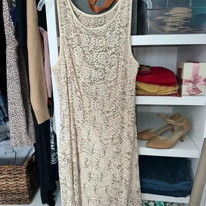 ๐ RN Studio Beige Stretch Lace Sequin Dress Mother of Bride or Wedding Dress ๐