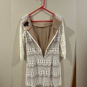 Size 4 RN Studio dress. Super cute dress and is in excellent condition! Has a brown/tan colored under lay with white lace on top.