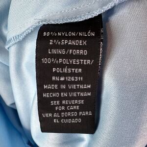 - light blue (baby blue, robin's egg blue) stretch knit lace fabric has plenty of give, body