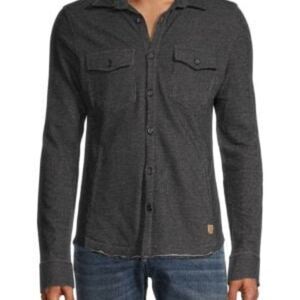 With distressed detailing at the hem, this lightweight shirt jacket buttons on for instant cool.