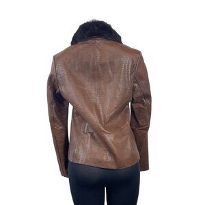 R&O Brand Women's Brown Faux Croc Leather Jacket With Faux Fur Collar