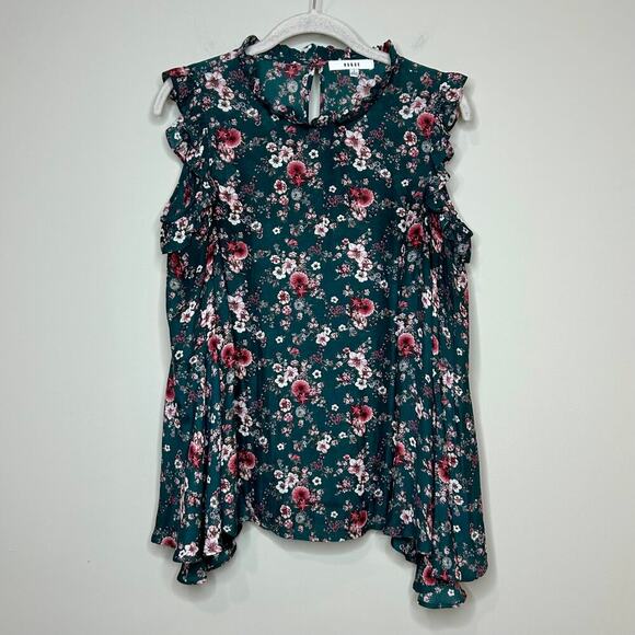 RO & DE Cold Shoulder Floral Print Blouse Size S Bell Sleeves