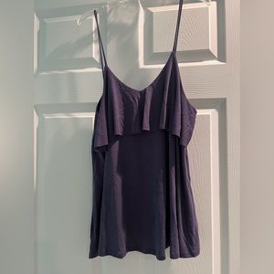 Super soft front ruffle tank with spaghetti straps and 3 buttons in back. Pit to pit = est 17” with length 19”. Made in the USA