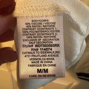 RO & DE White Blouse Red Black Sleeve Stripes Sz MED Elastic Cuffs Back Zipper