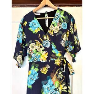 ROAM navy blue rayon floral wrap dress— Size Medium