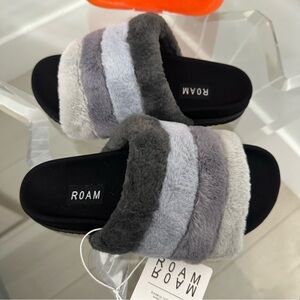 ROAM Prism Twilight Striped Slide Faux Fur SZ 39 Comfy Luxury Is New With Tags.
