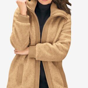 ROAMAN’S Camel Textured Fleece Bomber Coat Ladies Plus Size 3X Size 30W 32W *