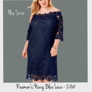 ROAMANS Navy Blue Plus Size Lace Off Shoulder Dres