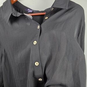 ROAMANS Sheer Button-Up Tunic Blouse Black Womens Plus Size 24W Business Casual