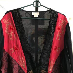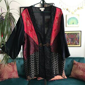 ROAMAN'S size 20W Burnout Velvet Asian Inspired Embroidered Kimono Cardigan